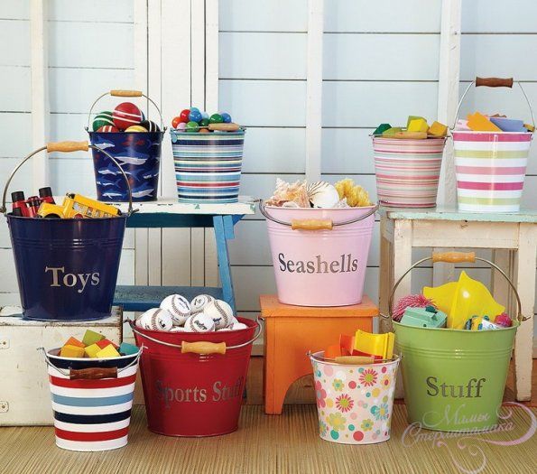 В магазине "всё по 38 " есть корзинки для белья ...Если нет денег то хороший вариант..Да просто коробки от бананов довольно прочная вещь..При желании обоями остатками обклеииь можно..Или тканью обшить..Вот нашли проблему!! Идей завались..У нас все конструкторы.кубики разложены в 7 литровых.одинаковых вёдрах из под творога .таких же как из под краски с крышками,только наши белые без надписей..Стоят друг на друге очень удобно и эстетично..Если белых не найти то можно из под краски обклеить самоклеющейся плёнкой..Ещё как классно получится! Совсем мелкие игрушки можно и из под майонеза в ведёрки разложить..Вот что нарыла в инете.вы меня вдохновили ,тоже наверное некоторые идеи воплощу в жизнь---