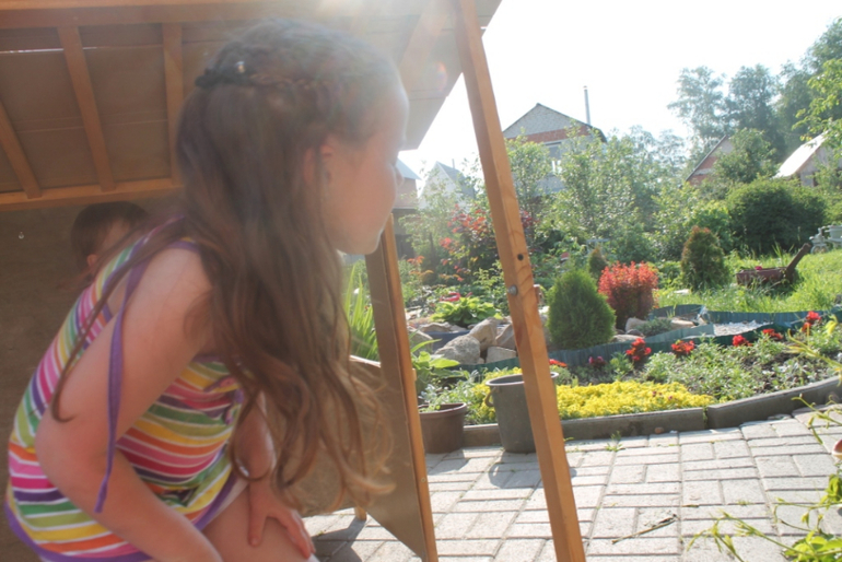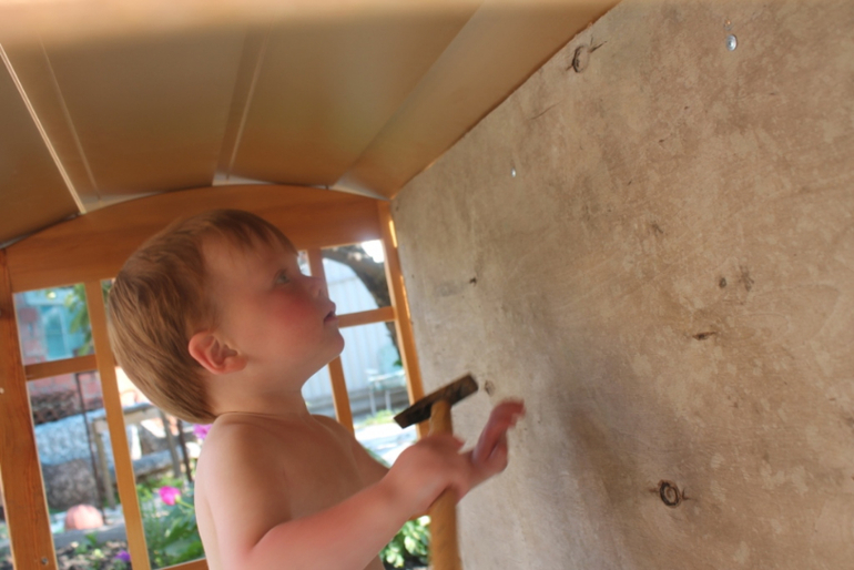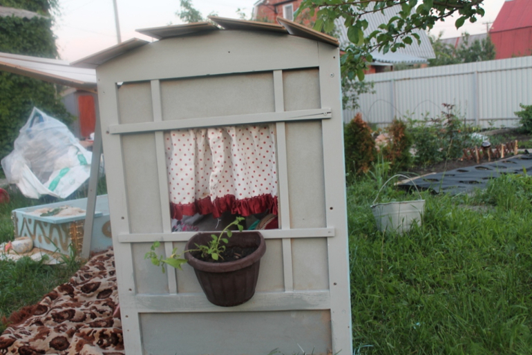 Внутри покрасили стены, повесили горшочек с цветком, перетащили детскую кроватку и потеряли детей на весь день)