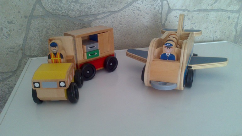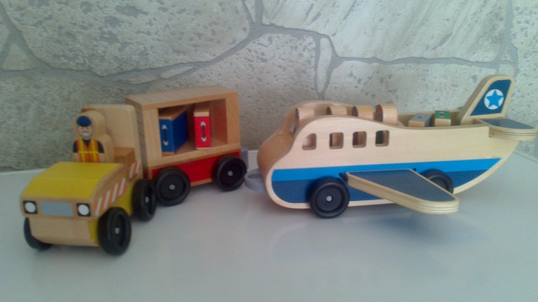 3. Деревянные игрушки. Машинку на верхнем фото можно разобрать на 3 части по типу пирамидки, самолет и машина -погрузчик водители и пассажиры вынимаются, чемоданы -перекладываются, и крылья у самолета складываются!