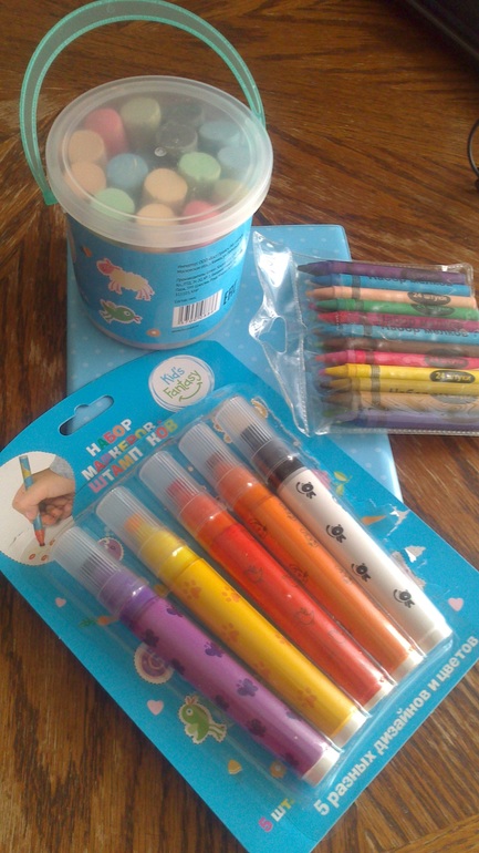 1. Творчество-любит рисовать(ручками, карандашами на всем,что попадется). Приобрели мелки, восковые карандаши и штампики. Только бы не съел:)
