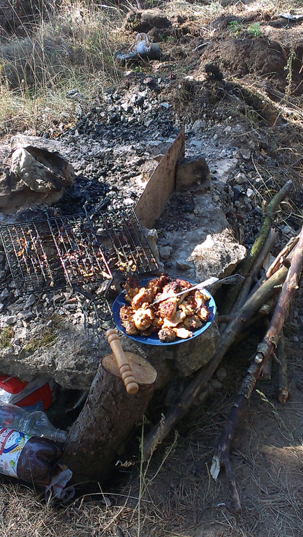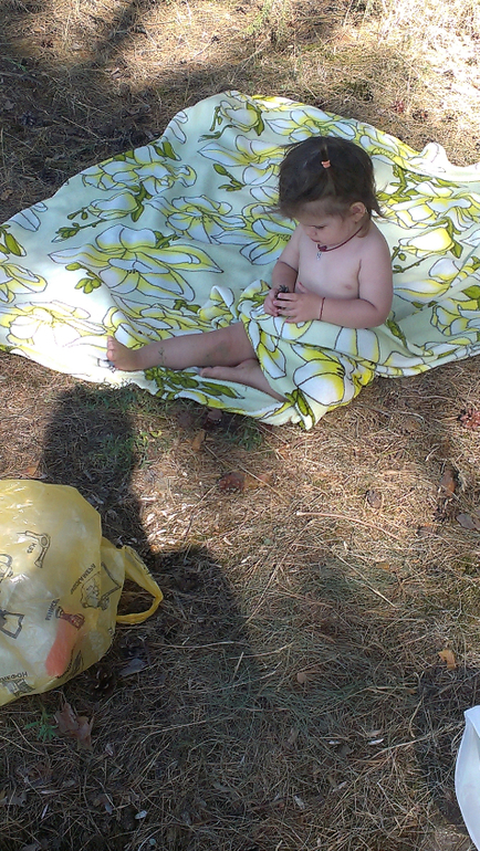 затем пришел вечер и я решила пожарить шашлык,а ребенок собирал в одеяло шишки