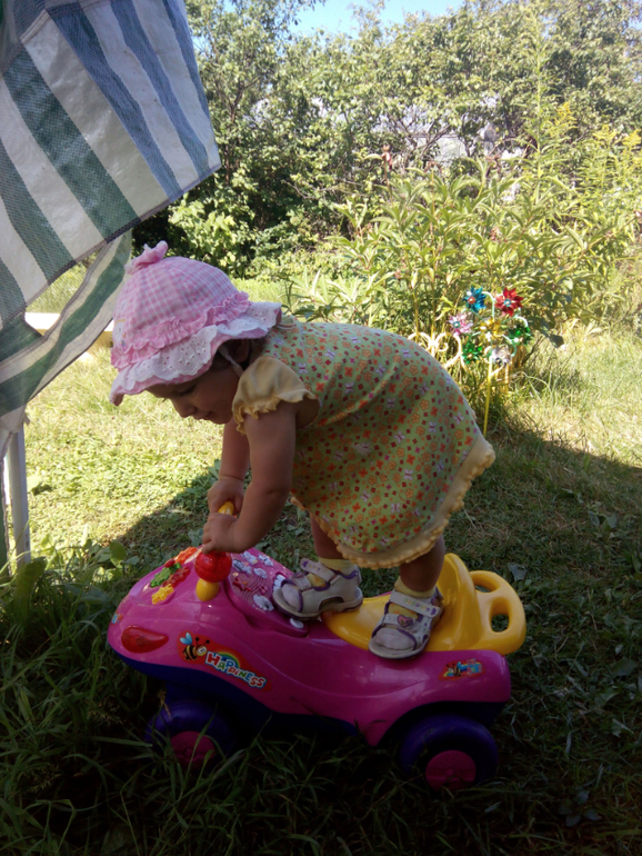 2) Все та же - машинка! Мы теперь спокойно залазим на нее и слазим) а еще фишка - встает на сиденье ногами - без рук! Если честно, мое сердце уходит в пятки!...но..ее это забавляет.. будущая акробатка? не дай бог, конечно!