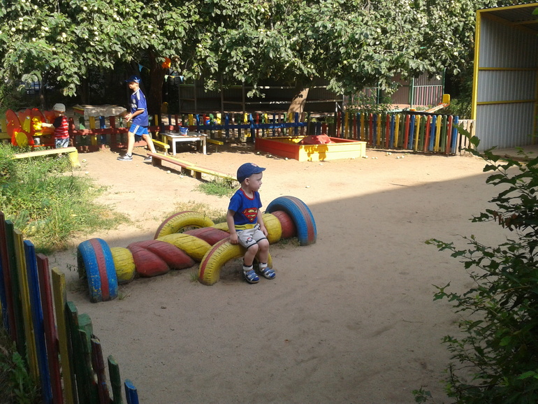 И ушла наблюдать за территорию, но оттуда меня выгнала воспитательница группы постарше. Фотка из засады))