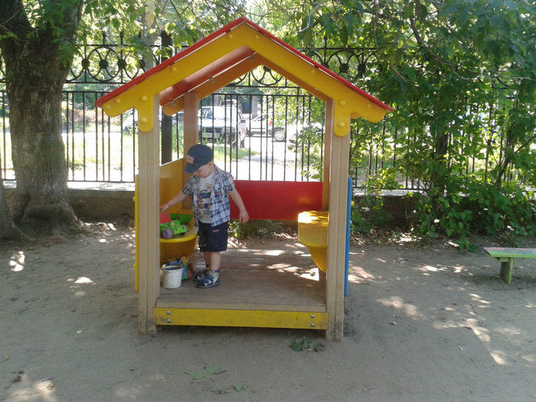 Играл, бегал нормально без меня, но в один момент сумел открыть калитку и сбежал к старшегрупникам на лазалки. Вот так-у всех дети как дети, а мой сбежал!)))