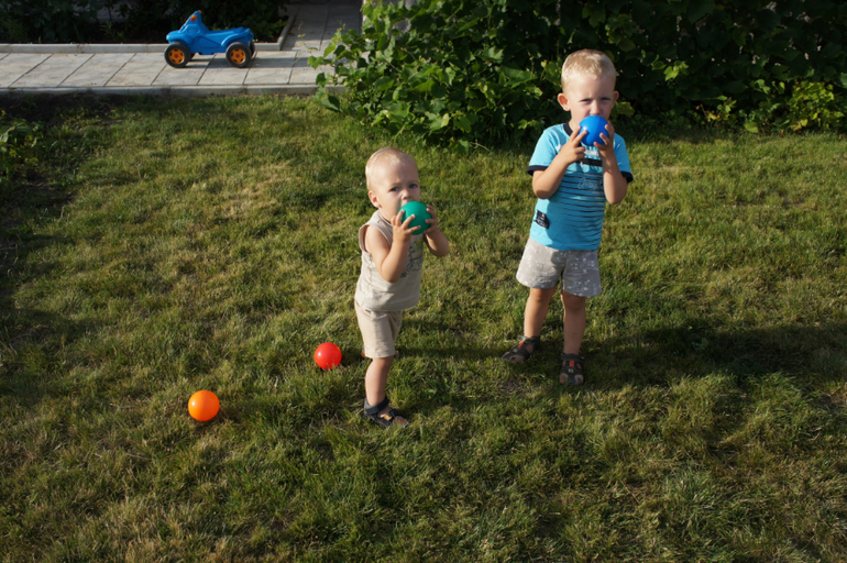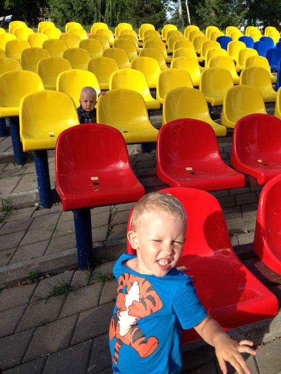 Жарень нереальная, но в доме прохладно и это круто. Тусили с троюродным братиком Тимофеем, у них любовь, брату 2.4 и если за ними не следить, то Тима Ваню и грохнуть может - при любом удобном случае палец в глаз или пнуть или душить в объятиях, но потом обязательно целовашки!!!