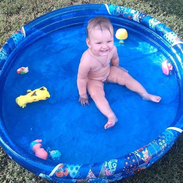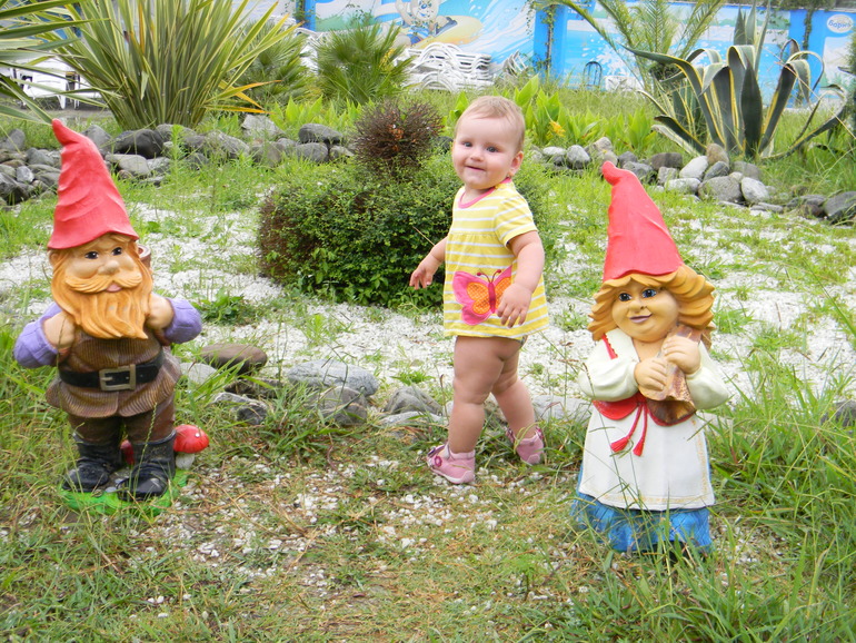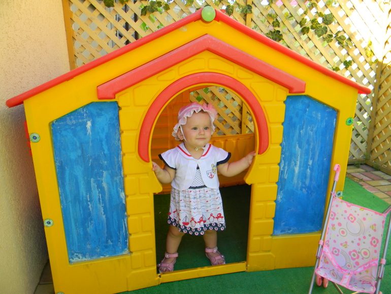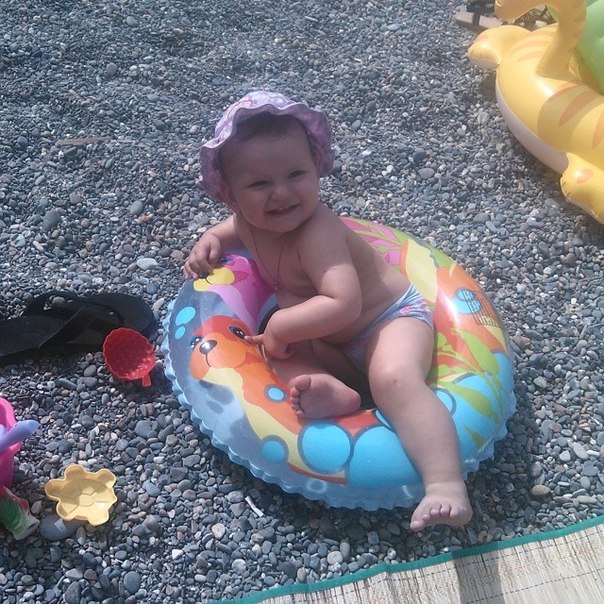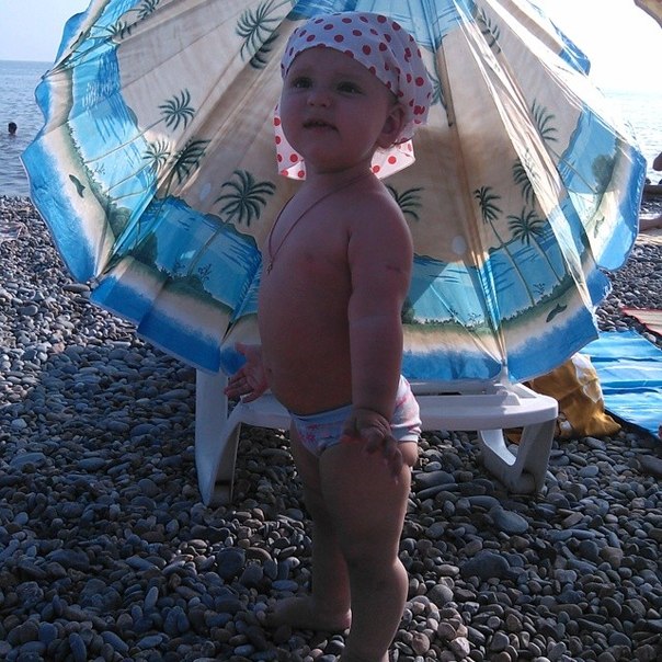 Растем и развиваемсяДавно сюда не писала. За полтора месяца Ариша хорошо подросла и многому научилась. Но обо всем по порядку. В середине июля мы ездили на море. Доча меня очень порадовала, т.к. сомнений и переживаний было много. Дорогу перенесла отлично (8 часов в одну сторону). Мы выезжали в ночь, и почти все время Арина спала. На пляже вела себя замечательно. Ее приводило в восторг огромное количество любимых камешков (пляж мелко-галечный). Она была готова играть с ними бесконечно! Правда первые дня два она старалась перепробовать их на вкус)) Вообще, море на Аришку действовало очень успокаивающе. Она практически не капризничала. Правда искупаться доча так и не захотела, пару раз ножки ей мочила и то под визг. Ну я этому даже рада, так как все знакомые детки, которые после нас ездили подхватили какую-то инфекцию...Этого я больше всего боялась и слава Богу нас это миновало. Единственное, очень плохо кушала на отдыхе. В основном титю (рада, что решила лето еще кормить, очень нас спасала), фрукты и овощи. Ну оно и понятно, жара. Мы ездили с бабушкой и дедушкой (моими родителями), и я этому очень рада. Так было реально легче и веселее! В общем, отдых удался! После поездки на море, всего денек побыли дома и снова отправились путешествовать! С начала к одной, а потом и к другой бабушке в деревню. В июле дома мы вообще не появлялись)) Как Орешке в деревне понравилось, кто б знал! Она с улицы не заходила. Там же мы выучили как делает собачка (Ав-ав), корова (мууу), а также слова "на" ,"дай","кися" и почему-то "часы")) Усовершенствовали свои навыки в танцах (как она танцует! Это что-то с чем-то!) И вообще, стали столько всего понимать! Прям реальный скачок в развитии произошел. Все что ей не скажешь, делает! И очень сильно вытянулась крошка наша, прям рослая такая! Ну и похудела соответственно из-за этого. Уже начинаю скучать по складочкам сладким!!! Вернулись мы 2 августа домой и вскоре заболели... Три дня температурили (у нас похоже розеола была), лечились и сейчас уже практически здоровы. А зубы наши все никак не вылезут...Как было месяцев пять назад 6 шт, так и есть! Все набухшее, внизу аж светятся, но никак не вылезут! Ну подождем. И конечно фото нашей кнопки.