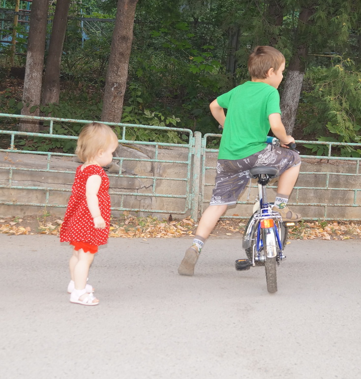 Любит играть с другими детками, особенно постарше, а вот они не всегда с ней играют)