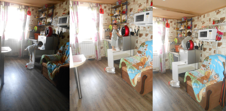 Я сняла скалолаза, а он так разозлился! Кричит, обидно ему: он такое, а я его так беспардонно! Я его давай укладывать, объяснять про опасности, про мои нервы и т.п. Нет, не внял, убежал на кухню. Так то можно было бы досмотреть фильм до конца в полном спокойствии, но понятно же, что это затишье не спроста. Пошла подглядывать и вижу: