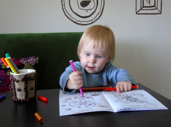 Были конечно и дождливые денёчки, тогда приходилось от дождя спасаться в разных кондитерских..и пока мама пила свой чай для похудения с пирожными и конфетами, доча рисовала,это её любимое занятие, дома может целыми днями рисовать,сколько ей не покупала всяких альбомов для рисования,ей всё равно места не хватает, рисует на обоях..