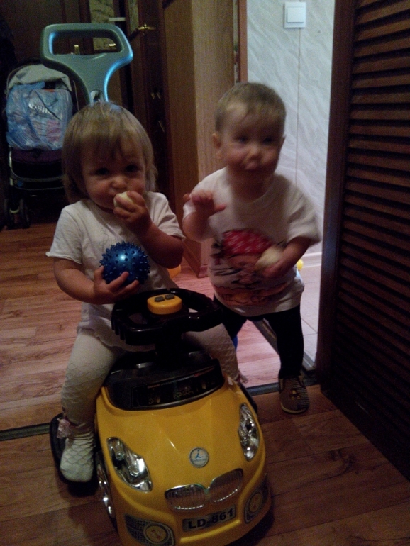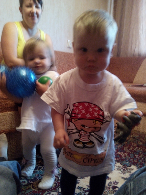 К сожалению, дружной игры у мелких не получилось( Кристи опять, забоялась Витюшу (то ли отвыкла, то ли квартира чужая), постоянно от него бегала с нытьем, и играли отдельно...каждый в своем "уголке".. Думаю, надо чаще встречаться и на улице, и в гости ходить)) Ну и парочка фотографий - наших детишек)) Некоторые смазанные, детки постоянно в движении))