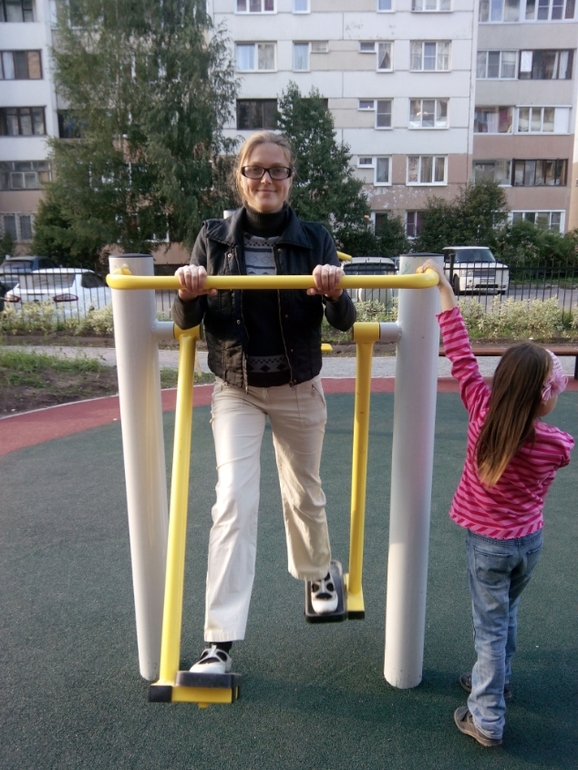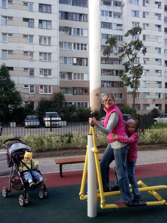 У нас в Сестрорецке такие тренажеры везде.На самом деле с маленькими детьми страшновато,т.к.они на них лезут,могут сильно раскачать,не дай Бог стукнут.