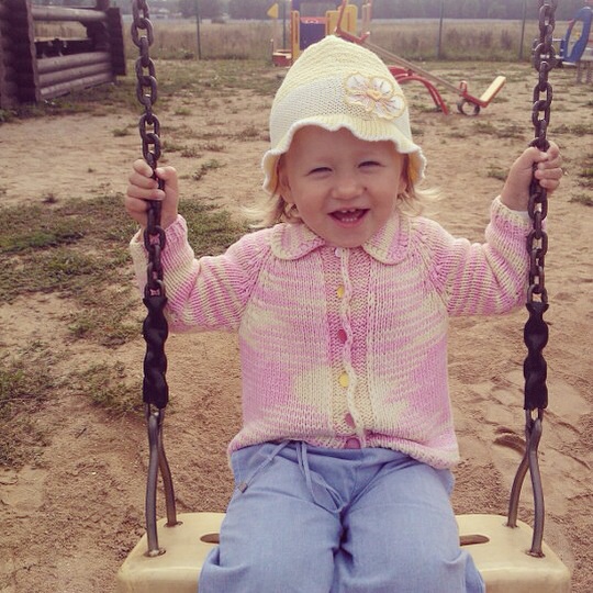 Очень любит качаться на качелях, если не накачалась, фиг слезет))) как ни уговаривай))) или будет реветь!!!