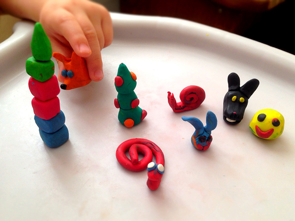 Вы молодцы лепите прям. У меня сынуля любит рвать пластилин. вернее отщипывать маленькие кусочки. Поэтому вместо того чтобы лепить фигурки я рисую ему картинку, контуры а он этими кусочками по цветам залепляет :-) такое занятие может удержать его на месте около часа и мне с ним интересно рядом сидеть подклеивать то тут то там :-)