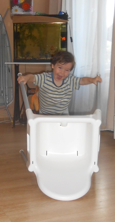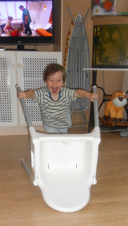 Из говорилок ничего нового вроде. Это все тот же наглый "Дый, дий" и с придыханием и обожанием «Папа». Дважды дразнил меня каким-то грузинским Мэ-мэ…мэ-мээ. Имитирует чихание, повторяет интересные звуки, вздохи, возгласы, но только не слова. Но я совершенно не тороплюсь услышать его высказывания или какие то слова. Мне достаточно видеть, что Леня многое понимает: и просьбы отнести посуду в мойку или подгузник (туда же, т.к. ведро стоит рядом), и названия многих предметов.