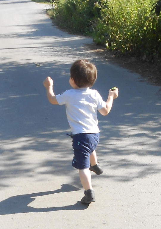 Так как амбиции у Лени очень уж прогрессируют, то, конечно же, пропорционально увеличивается количество обид на меня, на кота, на горячую крышку и высоко стоящую баночку. Когда он злится, а я его хочу унести, может с силой ущипнуть или даже ударить! Я обижаюсь… Но радует, что Ленька переключается с проблемы пока достаточно быстро. Например, собрались вчера по делам, я Пончика за руку веду, Сережа колесо от коляски несет (заменить надо). Проходя мимо мангала, Лене захотелось угли пожамкать, и он начал вырываться, падать. Я говорю:
