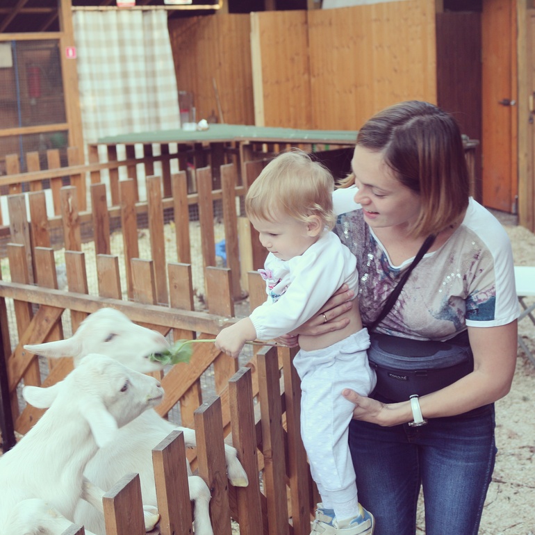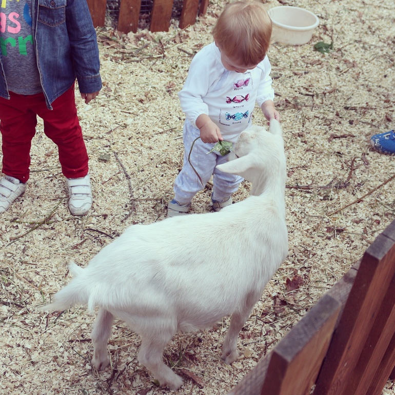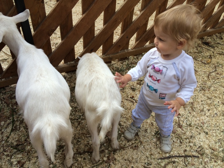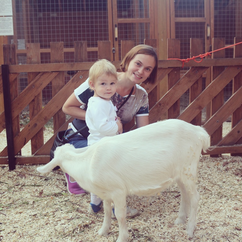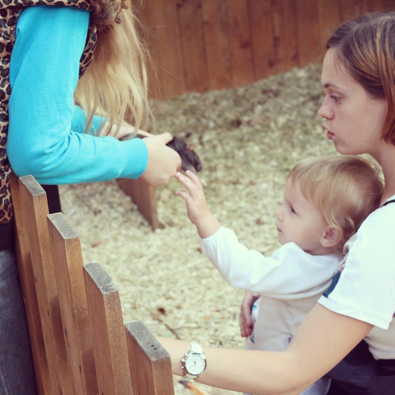 Вопросы по досугу с детьмиВ контактном зоопарке в Самарском Загородном парке! Контактным его можно назвать с большой натяжкой, трогать можно было только крыс и козлят. Но нам и этого хватило. Я боялась, что Варя козлят испугается, а она за ними неотступно ходила, гладила, кормила с руки прямо! Там же кормили желудями белочек. Погладили крысу, но в руках ее подержать не дали(( Потом долго по вольеру носилась еще, еле увели!
