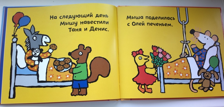 С самых первых страниц мы с сыном переживали за Мышу, она упала с батута, ей больно,