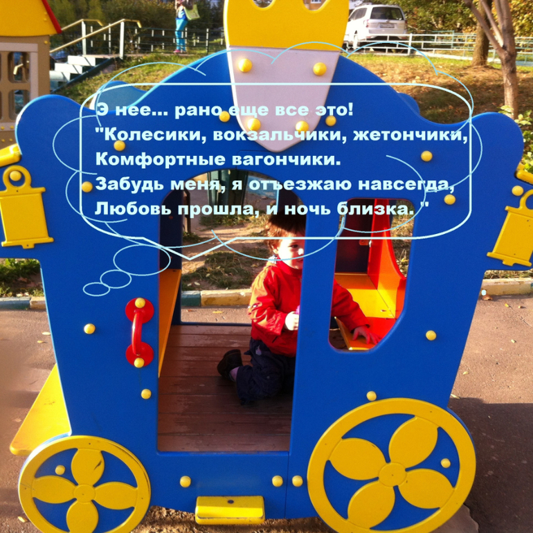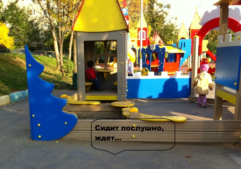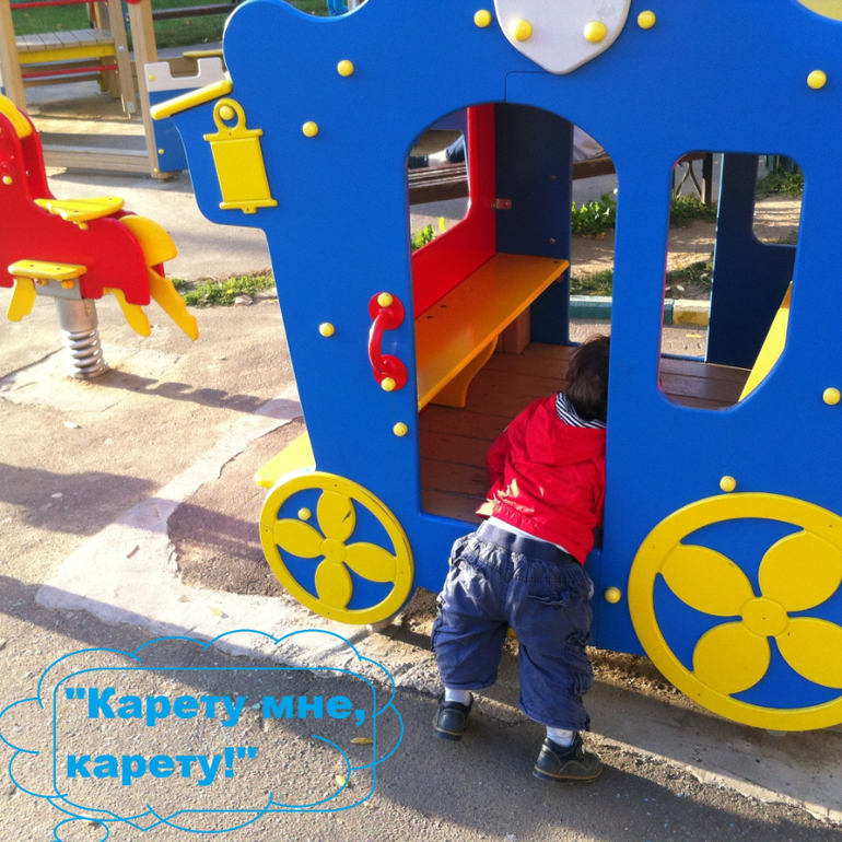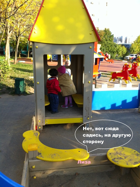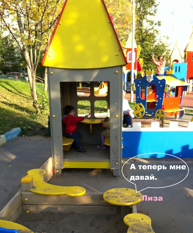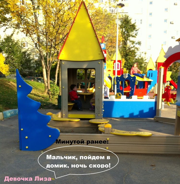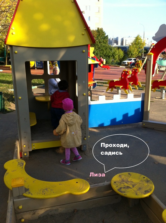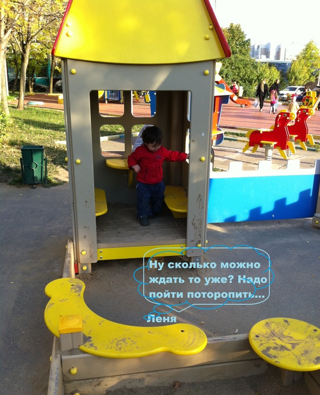 Идем на прогулкуЕздили с Сережкой по работе и пока ждали его, решили поискать детскую площадку. Нашли аж 2, одна для более взрослых деток, вторая прям для нас). Так вот к моему Леньке подошла девочка и стала звать его в домик! Я заинтересовано следила за их взаимодействием: девчушка так бойко командовала Леней, а он все понимал и слушался. Никаких расшифровывающих жестов, таких какими пользуемся мы, взрослые, что бы донести задачу до малыша)). Дабы все в красках и с доказательствами рассказать Сережке, я начала их фотографировать.