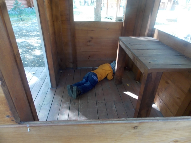 И должна же быть ложка дегтя в бочке меда)))) Домики, Свят их так любит!!! Спать особенно. А спит он с мамой... Запросил меня в один такой залезть, залезла. А когда стала я вылазить и - хрясть! - головой о деревянную балку со всей дури!!!!! Вся жизнь пронеслась у меня перед глазами))))))) шишка по сей день на голове))))) Зато, от того, что остаток дня голова моя пухла и меня несчадно тошнило, я провалялась остаток дня в кровати - ОТДЫХАЯ!!! Еще одно доказательство - все, что ни делается, к лучшему! Фото домиков спящего Святки!