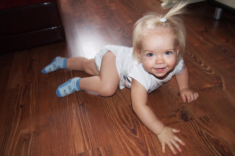 Также нравится, когда за ней с топотом бегут. Визжит, смеется. А потом разворачивается и бежит навстречу, заваливает сама. И так нравится, что угомонить не могу порой. А с каждым разом лететь мне в руки начинает все раньше и норовит плюхнуться на пол с размаху. Приходится идти навстречу, встречать, ловить.