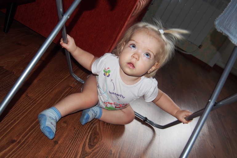 Еще помощница везде. Папа приносит продукты, а она бежит, встречает, и скорее пакеты разгребать. Белье рада помогать из машины вытаскивать и мне несет весить. Мусор вынести все сама - бегом на кухню (запинаясь и падая), шкафчик откроет, мусор кинет в ведро (правда, если ведро полное, то иногда хочется и оттуда что-нибудь повытаскивать, так что ходим смотрим, чтобы мусора больше в квартире не стало после ее походов), дверцу закроет и идет обратно - деловая-деловая. Когда предлагаю сходить покушать, то со словами «ням-ням» вскакивает и бежит, открывает шкафчик со своими кашками-пюрешками, начинает что-то доставать. Короче, все знает, все умеет, все сама))