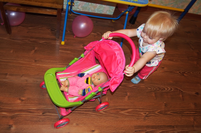 Она вдруг все понимает. Говорю дай - дает, говорю подними - поднимет, говорю принеси - несет, положи лялю в коляску - несет, укладывает, покатай-покачай - катает с таким убаюкивающим «а-а-А». Нельзя понимает давно, но зачастую не слышит или делает втихаря, т.к. соблазн велик и запретный плод сладок. Но на то и няньки, чтобы контролировать.