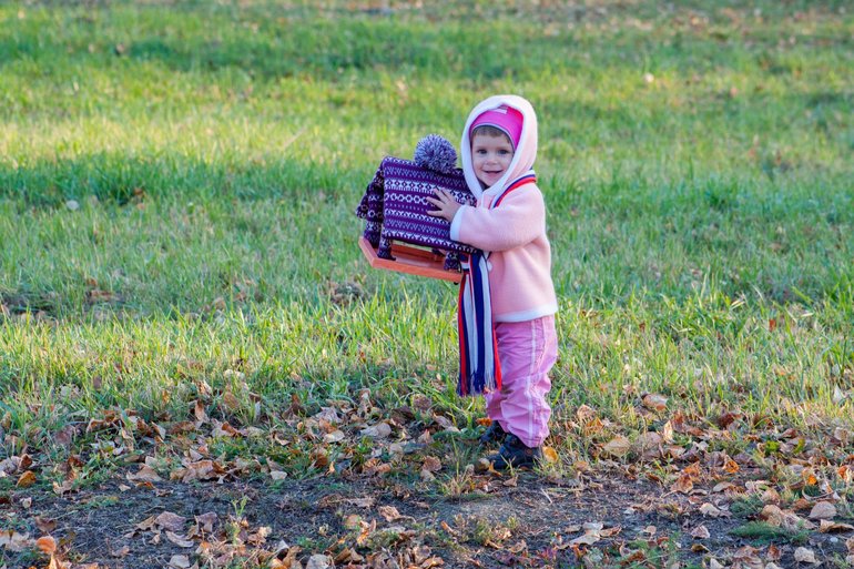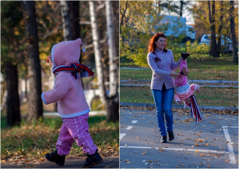 Алисонька с удовольствием кормит кота печеньем, папу сухариком, а маму кашей. И даже кормит голубей специально купленной булочкой (сглатывает слюнки, но все до крошки отдает) и тыквенными семечками. Для белочек у нас в изобилии припасена компотная смесь.