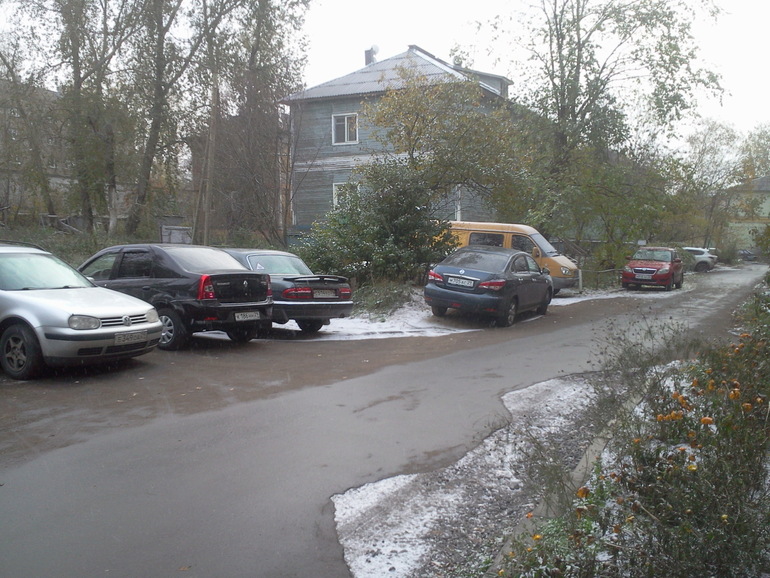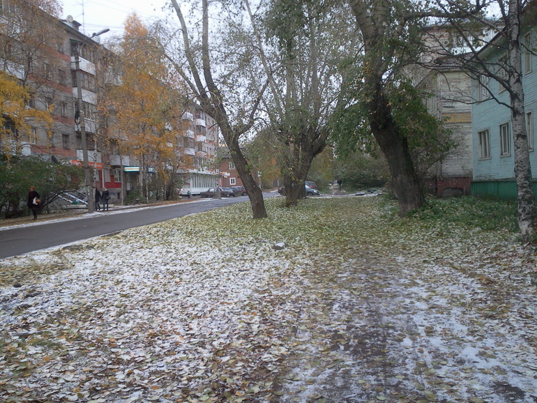 Вчера наблюдала необычное явление - листопад со снегом. Надо было заснять на видео, не сообразила.