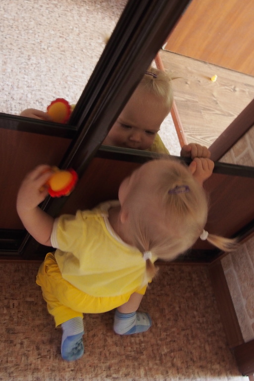 Снова стала "мамина". Новый этап. То вроде стала от меня отпихиваться, проситься к бабушкам на ручки, играть без меня. То вот опять. Порой в туалет иду, только услышит, что дверь закрыла и крику, и слезы градом. Так и ходим парой. Особенно вечерами, когда папа приходит. Нет, сначала мы весело разгребаем пакеты с продуктами, потом бегаем вокруг папы, пока он кушает... Но стоит ему освободиться, как она ноет и лезет ко мне на ручки - знает уже, что мама срулит)) Если уверена, что мама под боком, то со всеми хорошо играет и бегает, но только почует нечистое, начинает ко мне липнуть.
