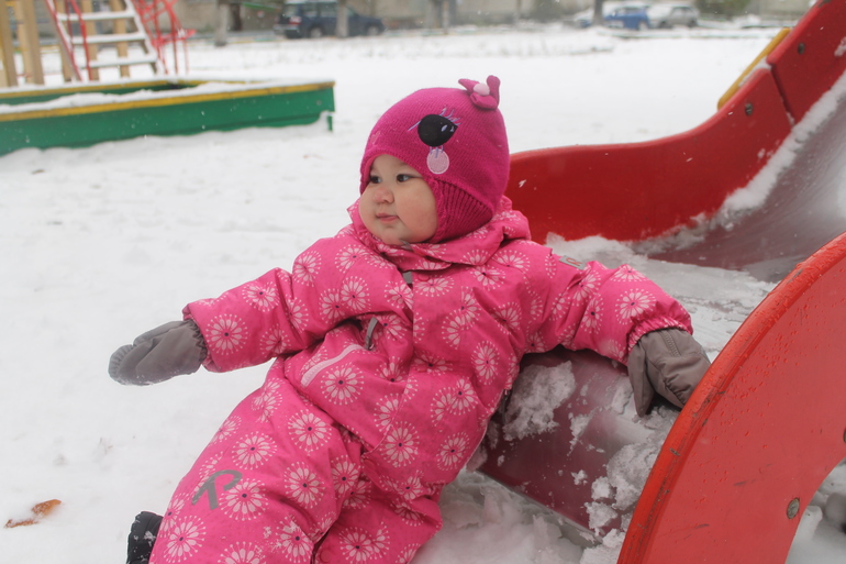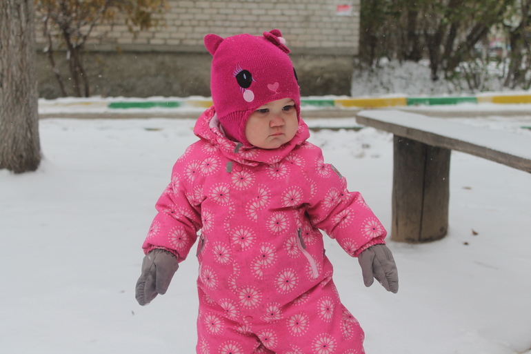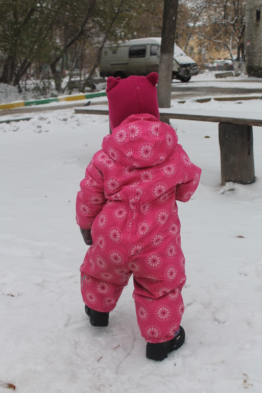 Да первый снег самый приятный)да,рейма тек 160 гр.совсем не мерзнет,носим на боди с дл.рукавом и колготки,краги лесси бай рейма)))