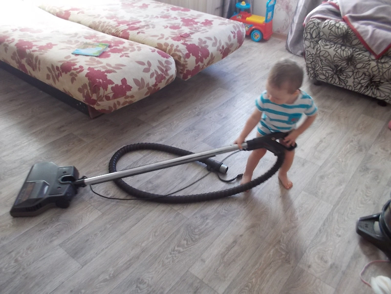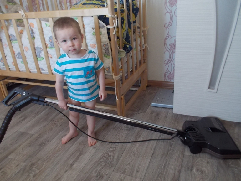 сын сегодня тоже квартиру пылесосил, хотя не любит шум от него, всегда выключал мне пылесос,а тут в азарт вошел, минут 40 трудился-искал соринки, засасывал и заглядывал в шланг. отобрать было не возможно, кричал громче пылесоса)))))