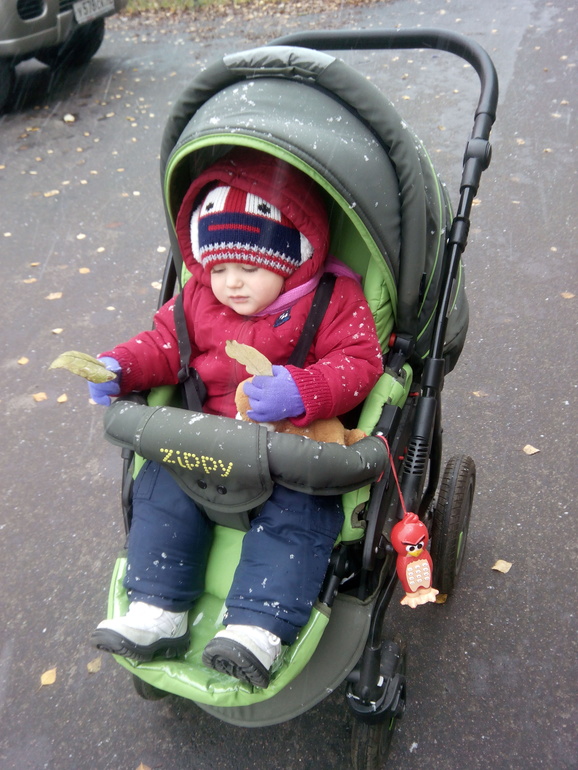 )) Гуляем 1 раз - утром - по 1,5-2 часа) Спим днем - 2-3 часа - иногда просыпаемся и уже темень...