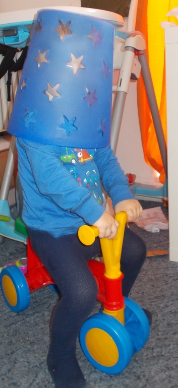 С корзиной — шлемом выглядит просто супер! Ведь во всем пытаются подражать взрослым. Забавно! А для у улицы Вы уже настоящей шлем купили... У меня Лёня беговел, самокат игнорирует. Зато пришлось купить вторую машину — каталку (для дома и улицы). Теперь паркует ее на стоянке рядом с папиной машиной.