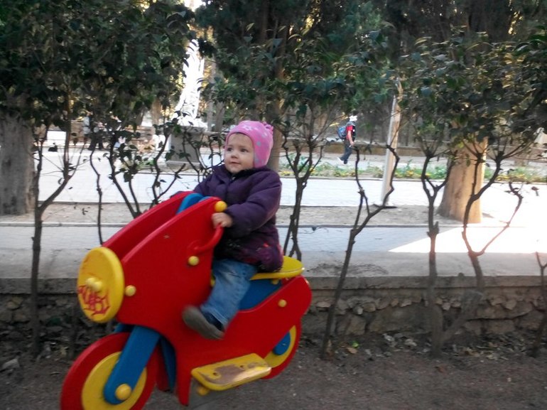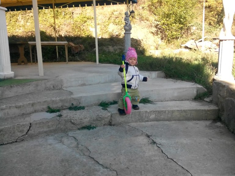 На улице собираемся со скандалом,но как только оказываемся за порогом сразу обо всем забывает и бежит вперед