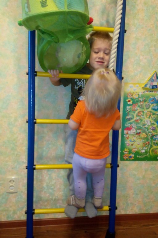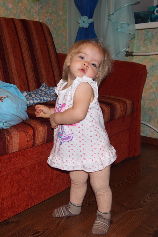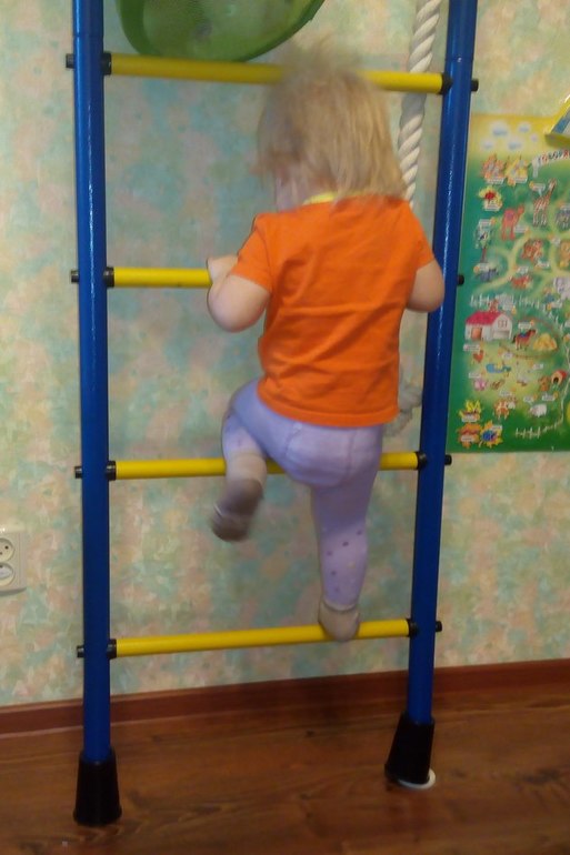 Как понятно из вышеописанного, Люляка покорила все диваны и взбирается нараз, будто всю жизнь умела. Но это что - благодаря бабушке, восхищающейся и поражающейся и, конечно, совершенно не желающей нам зла, Юльшка освоила пуфик, а с него детский столик. Нет, пуфик, естественно, ниже диванов, но просто так я на него не разрешала забираться ей, т.к. смысла нет. А уж про стол я молчу - нечего там делать ни попой, ни ногами. Одна истерика и отучила ползать ее туда. И впредь - строгое «нельзя» вполне понятно. Но вот Юлька добралась и до лестницы. Ох, и теперь это моя головная боль. Хоть она и нечасто туда ползет, но не да Бог рядом не окажется взрослого - залезть уже может на самую верхатуру, а слезать вообще никак. Просто отпускается и оказывается в надежных руках. Я теперь дверь в комнату с лестницей закрываю часто, боюсь, что полезет одна. И лезет то спешит, ногами промахивается. Зато радости полные штаны. Тимке было 3 года, когда мы ему поставили уголок спортивный. И то страшно было, когда ползал, все страховали, не разрешали без нас. А эта вообще козявка. И ничего не поделаешь - надо учить ползать и слезать, чтобы все уверенно делала сама. А пока бдеть.