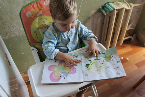 Возякаться с пластилином Сережа в принципе любит. Называет его смешным словом "бабадиба", иногда - "дибабаба". Но всё-таки очень усидчивым его не назовешь - все наши "творческие" занятия - максимум минут на двадцать. Но хоть что-то.
