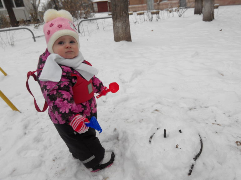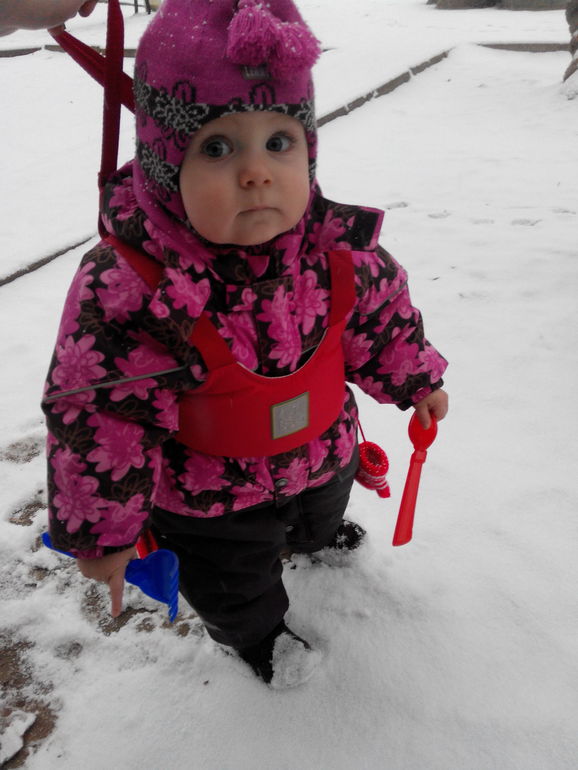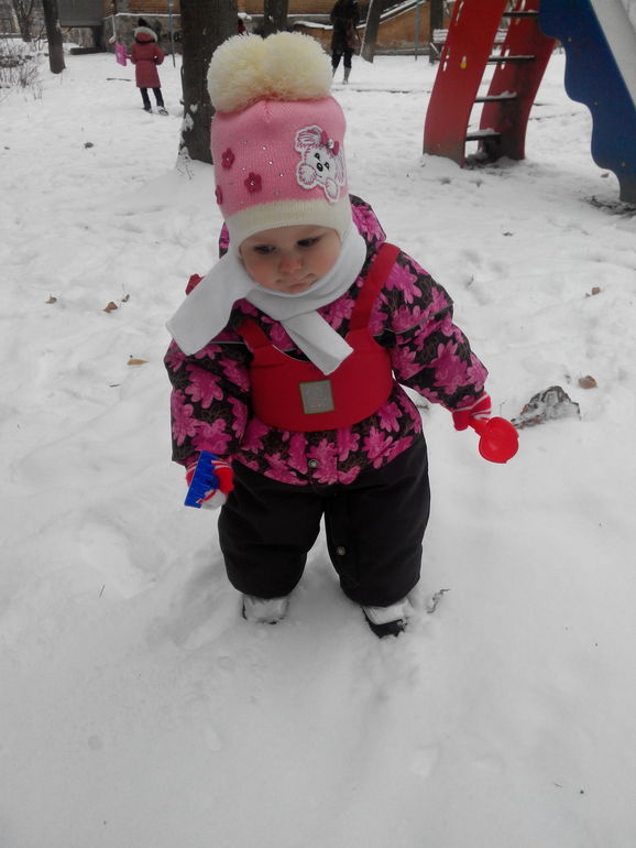 Идем на прогулку3 дня активно идёт снег. Красота и новогоднее настроение витает в воздухе! Ксюшка видела снег в прошлом году, лёжа в коляске в основном при этом сонная. Так что этот нынешний снег для неё стал неожиданной новинкой. Гуляли мы в основном ковыряясь лопаткой и грабелькой в песке, а тут вышли и бац...