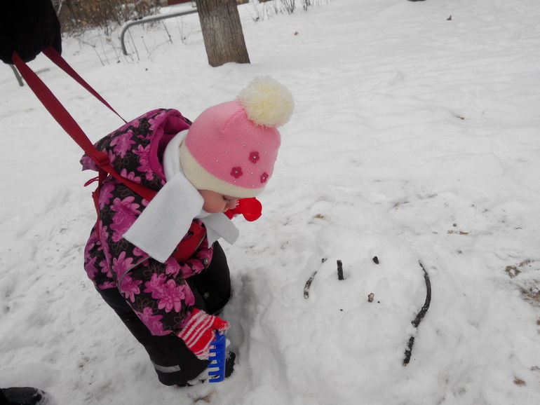 Снег сухой и рассыпчатый, но первый "снеговик" был слеплен )