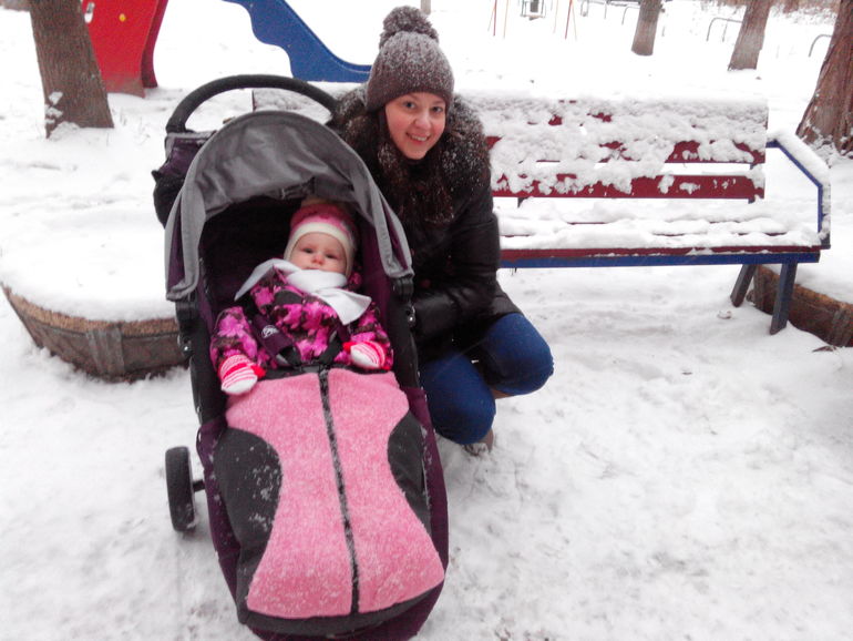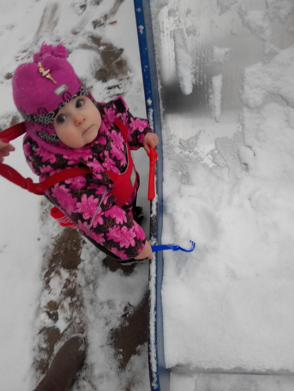 Теперь мы ещё утеплились и героически пошли на улицу. К слову, ходим мы ещё шатко, так что вожжи наши помощники пока что.