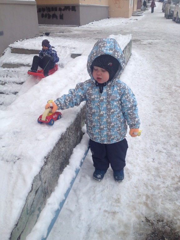 Идем на прогулкупервый календарный день зимы совпал с первым днем настоящей зимы. Старший в школу не пошел- на улице метель, снег , ветер сильный был. Учительница рекомендавала :) дома сидеть.вот и сидели. А сегодня решили выползти хоть на полчаса. На улице -10, а такое впечатление что все -30. Щеки мерзнут, у Коляхи щечки румяные, но сопли на морозе ручьем лились, в прошлом году на улице то спали... Катались с небольшой горки на санках пластиковых, папе наказали вечером принести обычные. И ура!!! удалось натянуть на руки варежки ему, а то снимал или не хотел вообще надевать. Костюмы у пацанов мембранные, теплые, а вот с обувью младшему пролетела, фирма Сказка, а ноги не теплые после прогулки:( и мама замерзла:( поэтому погуляли всего 30 мин. А какая погода девчонки у вас была 1 дек???