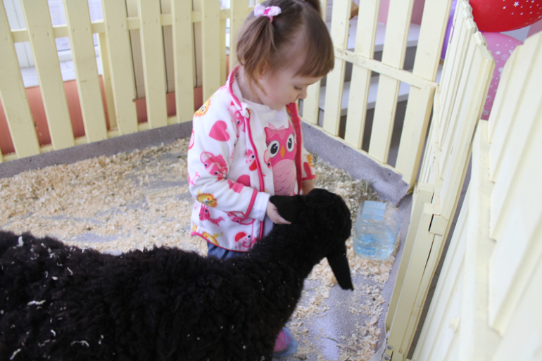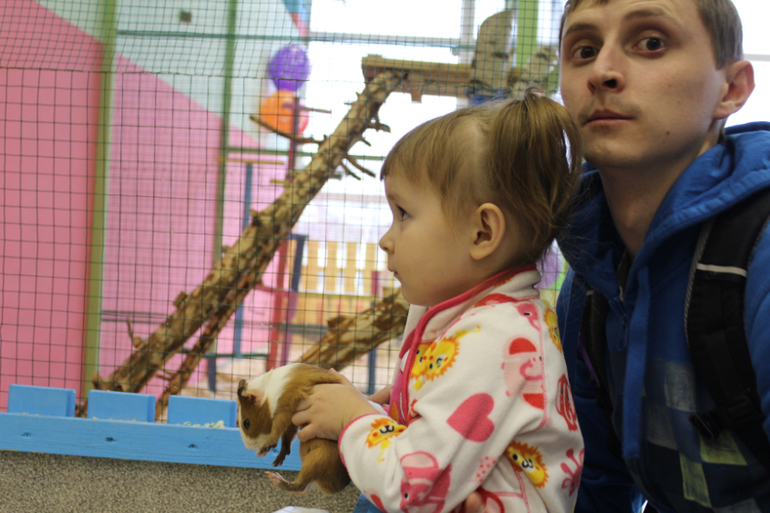 О хорошем!Детям в принципе интересно,все таки зверята, которых можно гладить и кормить. Можно походить, посмотреть. Животные: ежи, морские свинки, гуси,курицы, овечки, кабанчик, козлята, кролики, попугаи, енот и скунс. Ниже фото по процессу: