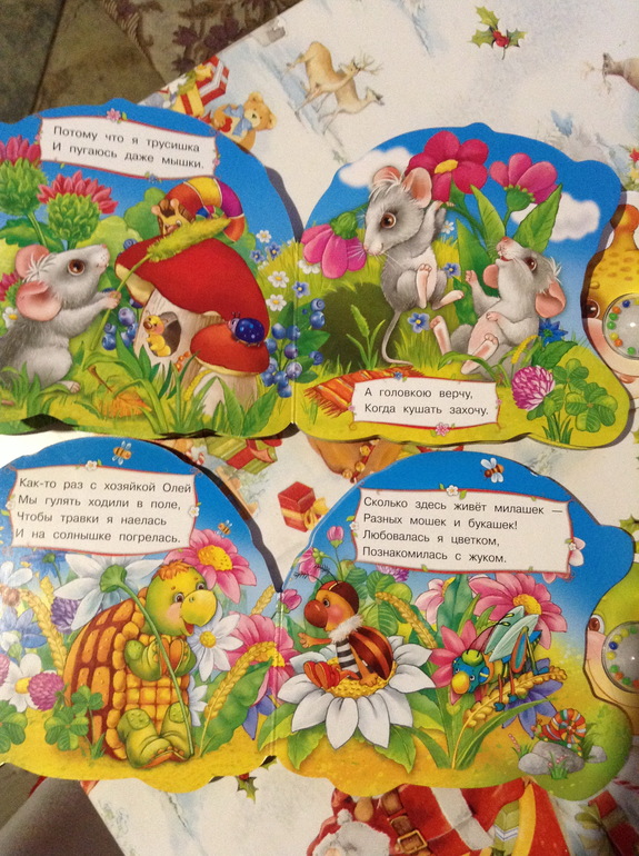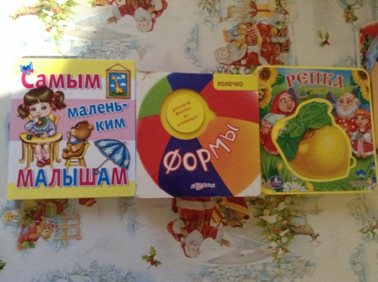 Эти книги достаются реже, но все потому, что они больше на погрызть, фигуры и персонажи достаются. В книге для самых маленьких читаем стихи Агнии Барто, рисунки там не очень и терпения на большее у дочки не хватает.