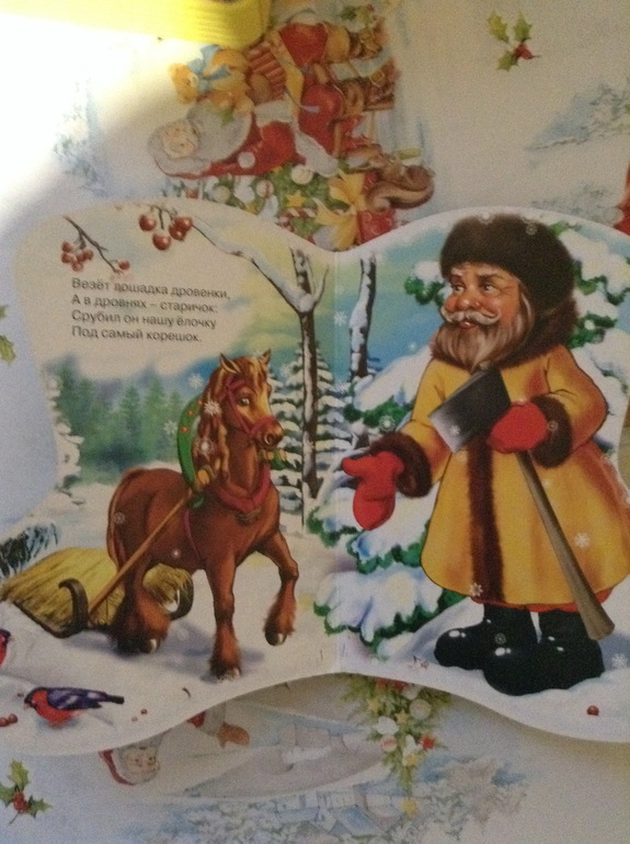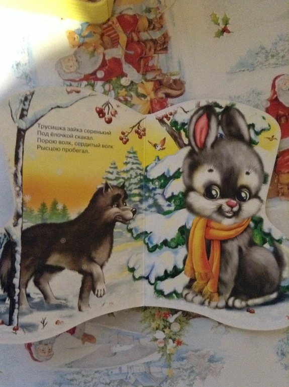 По новогодней тематике купила две книжки, но одну не смогла отрыть в темной комнате для фотки, понравились за прорисовку картинок. Уже дней пять дочка эти две книжки первыми тащит: