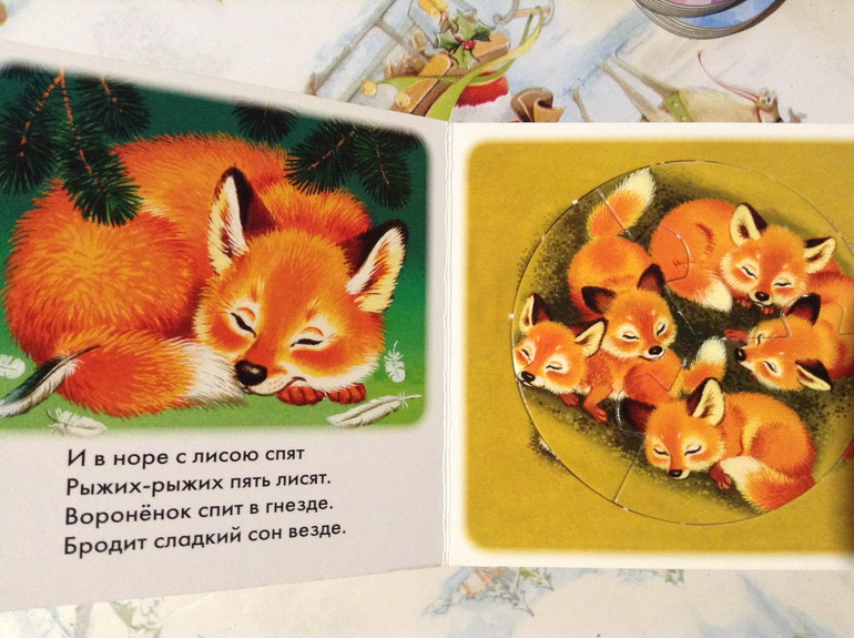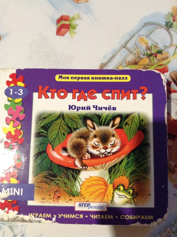 Это фаворит, могу раза по 3-4 подряд читать. Книжка с пазлами, но пока не достаю их, а то любить ее будет за возможность погрызть.