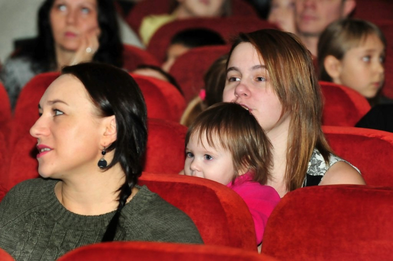Летуся с удовольствием смотрела на действие. Больше всего ей понравилась жар-птица, когда она появлялась на сцене, доченька начинала хлопать в ладошки и ей было не важно, что другие так не делают ))) Когда хлопали все она оглядывалась и иногда подражала. Немного пугалась, когда весь зал отвечал на вопросы со сцены, но это действительно было громко.