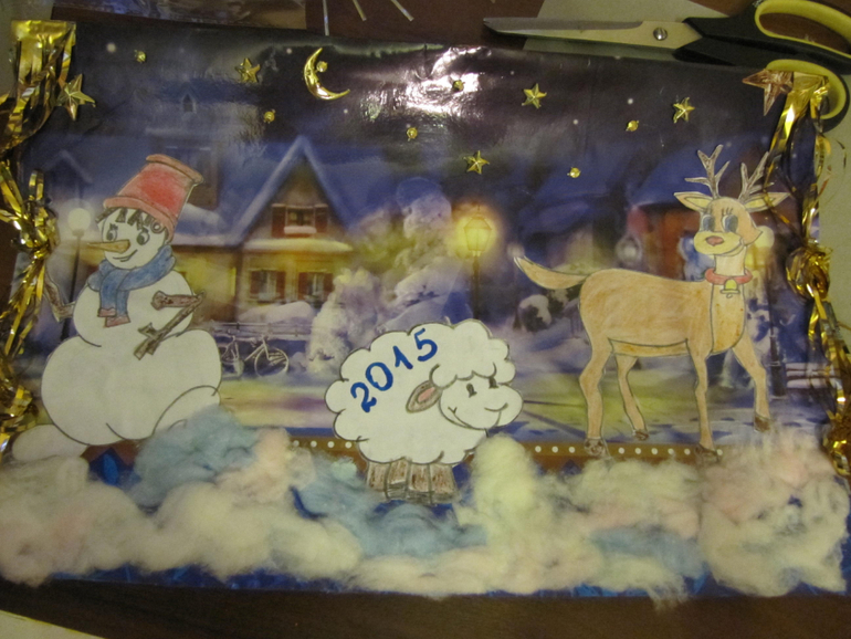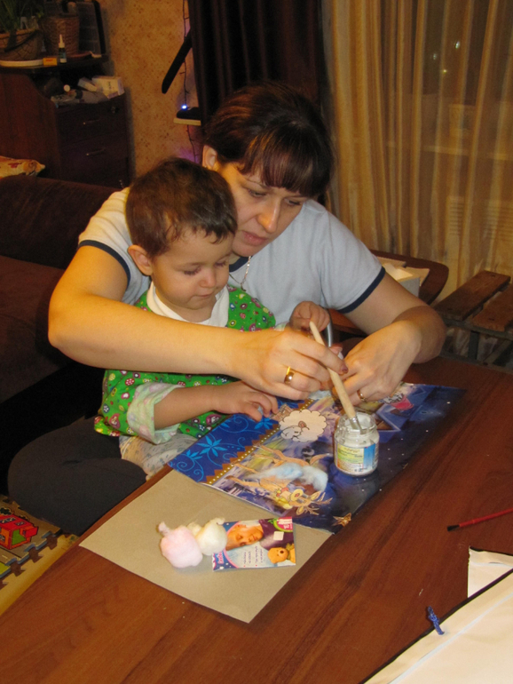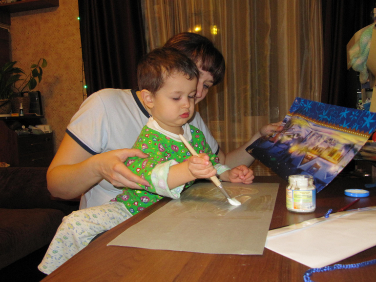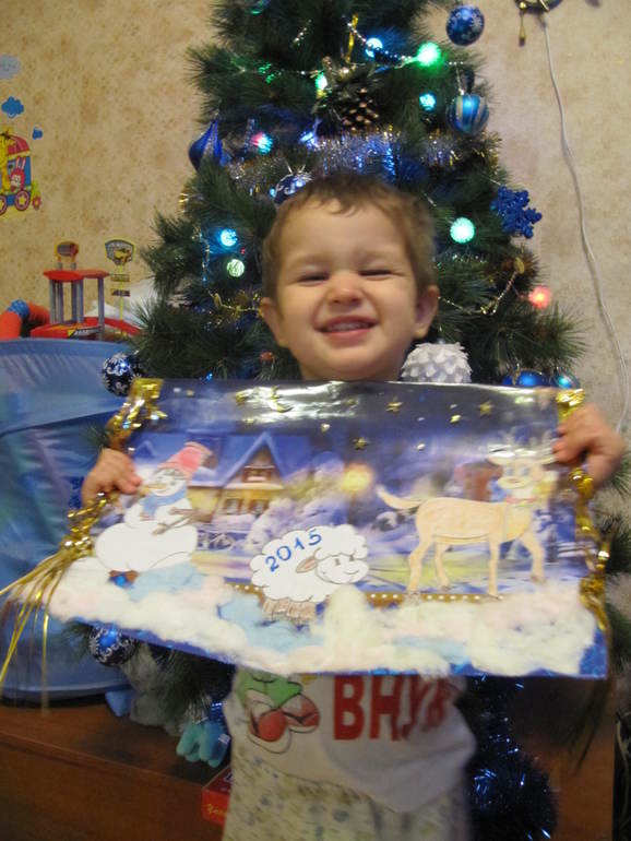 Растем и развиваемсяДали задание - сделать в садик открытку новогоднюю для стенда. Я, конечно, понимаю, что задание родителям)))) и кто-то не стал заморачиваться и просто распечатал симпотичную картинку и раскрасил)))) но я решила, что надо приучать сына к такому творчеству. Помогал сынуля немного. Быстро ему надело и доделывали мы с папой. Но начало положил сам)))))