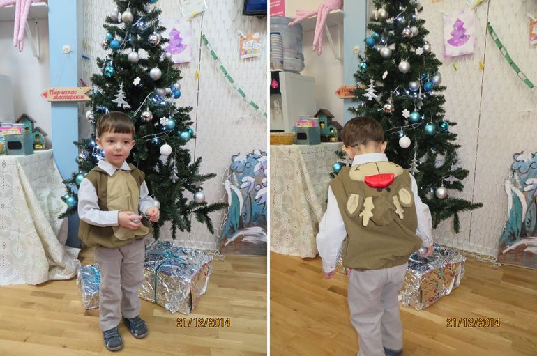 Мероприятия Вчера у Лёни была первая встреча с Дедушкой Морозом. Само ёлочно-праздничное мероприятие ему не понравилось. Но вот к Деду Морозу он храбро подошел и поздоровался за руку. Ответил, что его зовут Лёня и тут же добавил "ак" (так он называет мусоровоз, который с нетерпением ждет под елочку). Дед Мороз обещал принести, а пока подарил книгу "Чудеса под Новый Год". Вот он мой маленький олененок: