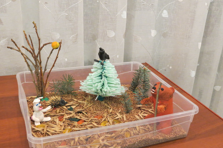 разыграна пластилиновая сказка Сутеева "Яблоко".