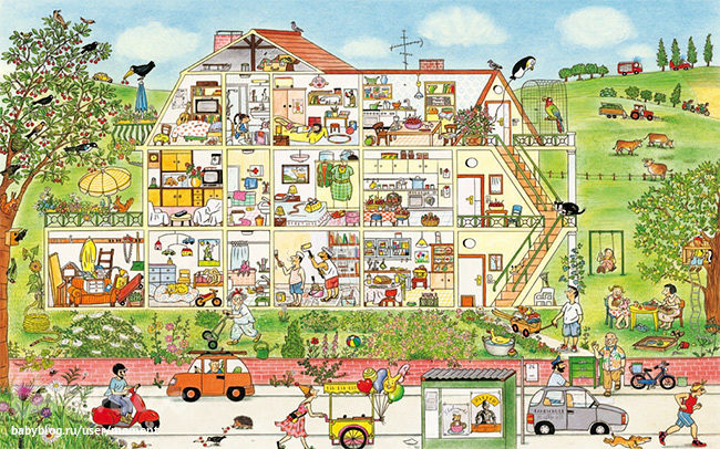 Сзади на обложке есть задания по каждой книге -найти лису или узнать кто что где делает в книге, даже мне, признаюсь, было интересно найти персонажи.
