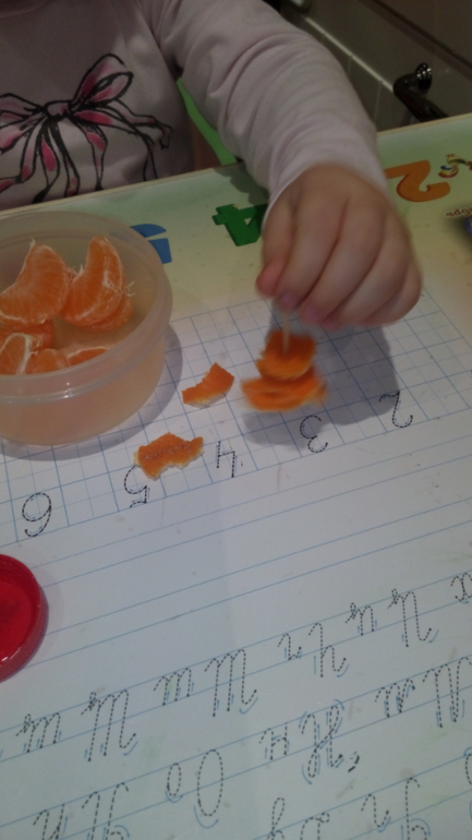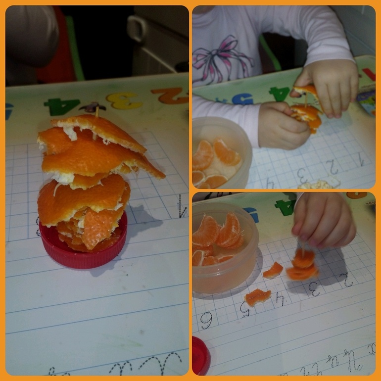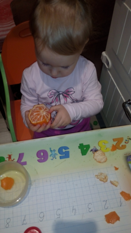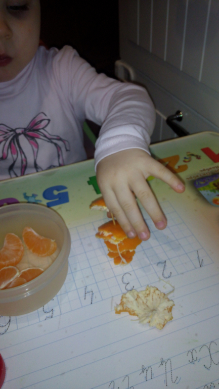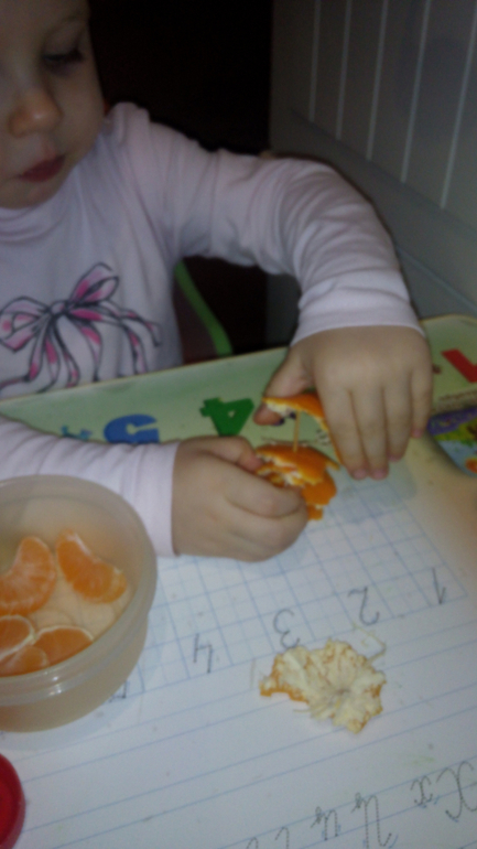 Растем и развиваемсяУстроив Ксюше перекус мандаринкой, я решила использовать этот момент для развития мелкой моторики)))